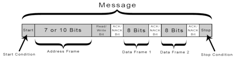 Cadre d'adresse: une séquence de 7 ou 10 bits unique pour chaque esclave qui identifie l'esclave lorsque le maître veut lui parler.