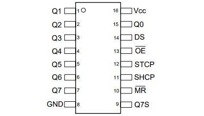 GPIO 06 CS1 -- 12 STCP GPIO 07 MOSI -- 14 DS GPIO 08 SCLK -- 11 SHCP