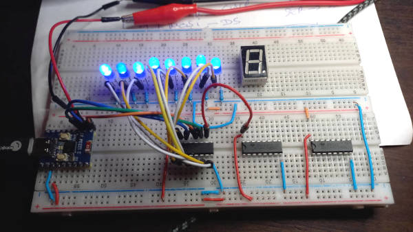 Pilotage de huit LEDs connectées à un registre 74HC595