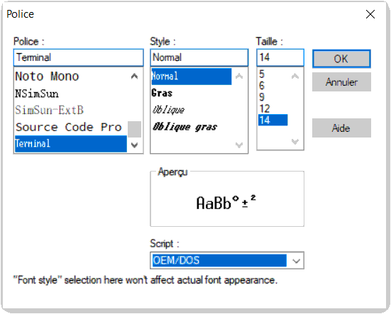 - sélectionner Font et Font...
