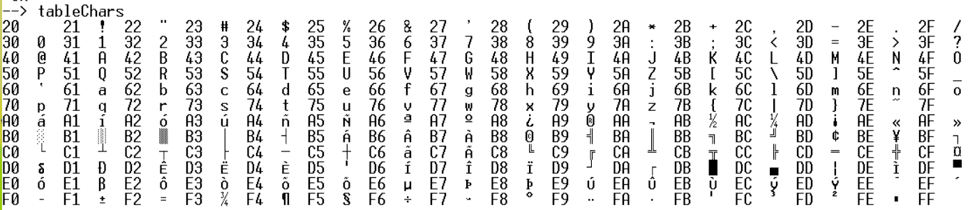 : tableChars ( -- )