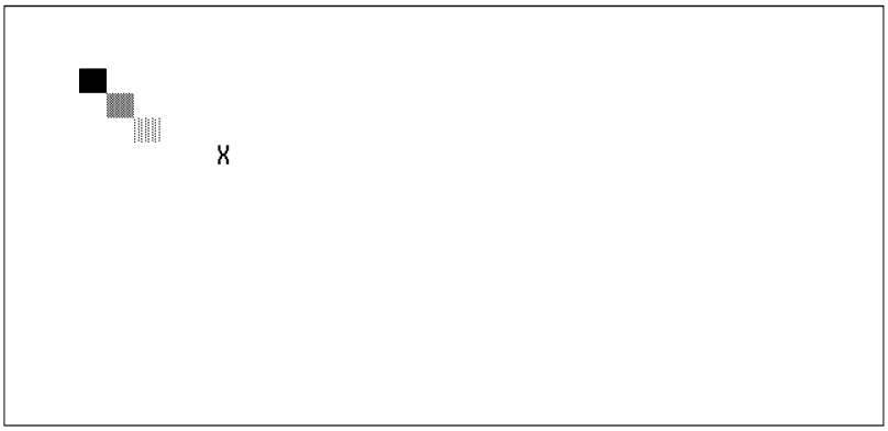 Ces caractères sont ceux du jeu ASCII MS-DOS. Certains de ces caractères sont semi-graphiques. Voici une insertion très simple d'un de ces caractères dans notre écran virtuel: