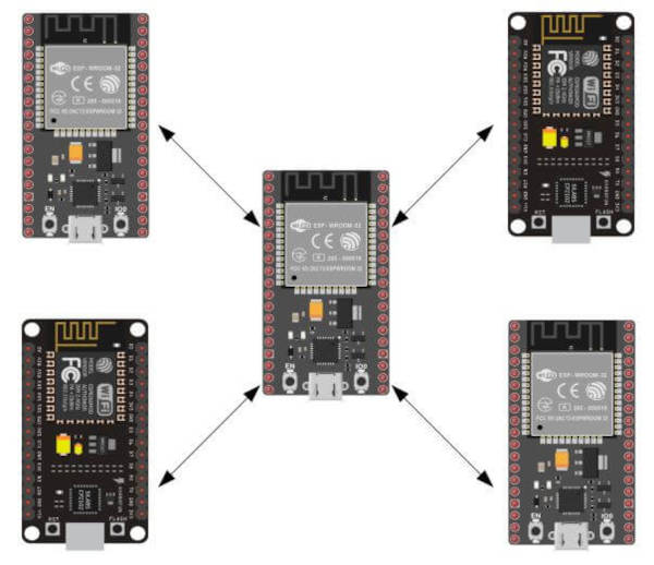 Chaque carte utilisant ESP-NOW est un noeud. Avec ESP-NOW, les noeuds n'ont pas besoin de se connecter à un routeur WiFi.